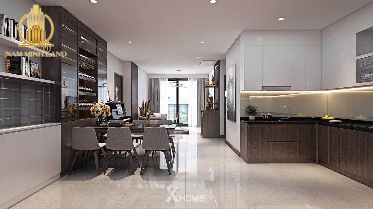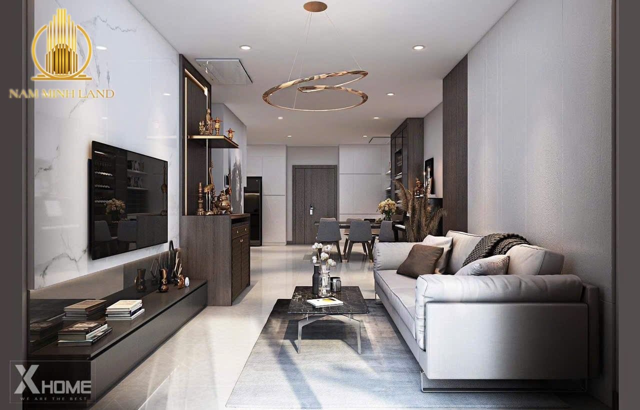 - Phòng khách: Không gian mở, thoáng đãng, kết nối với ban công rộng lớn.