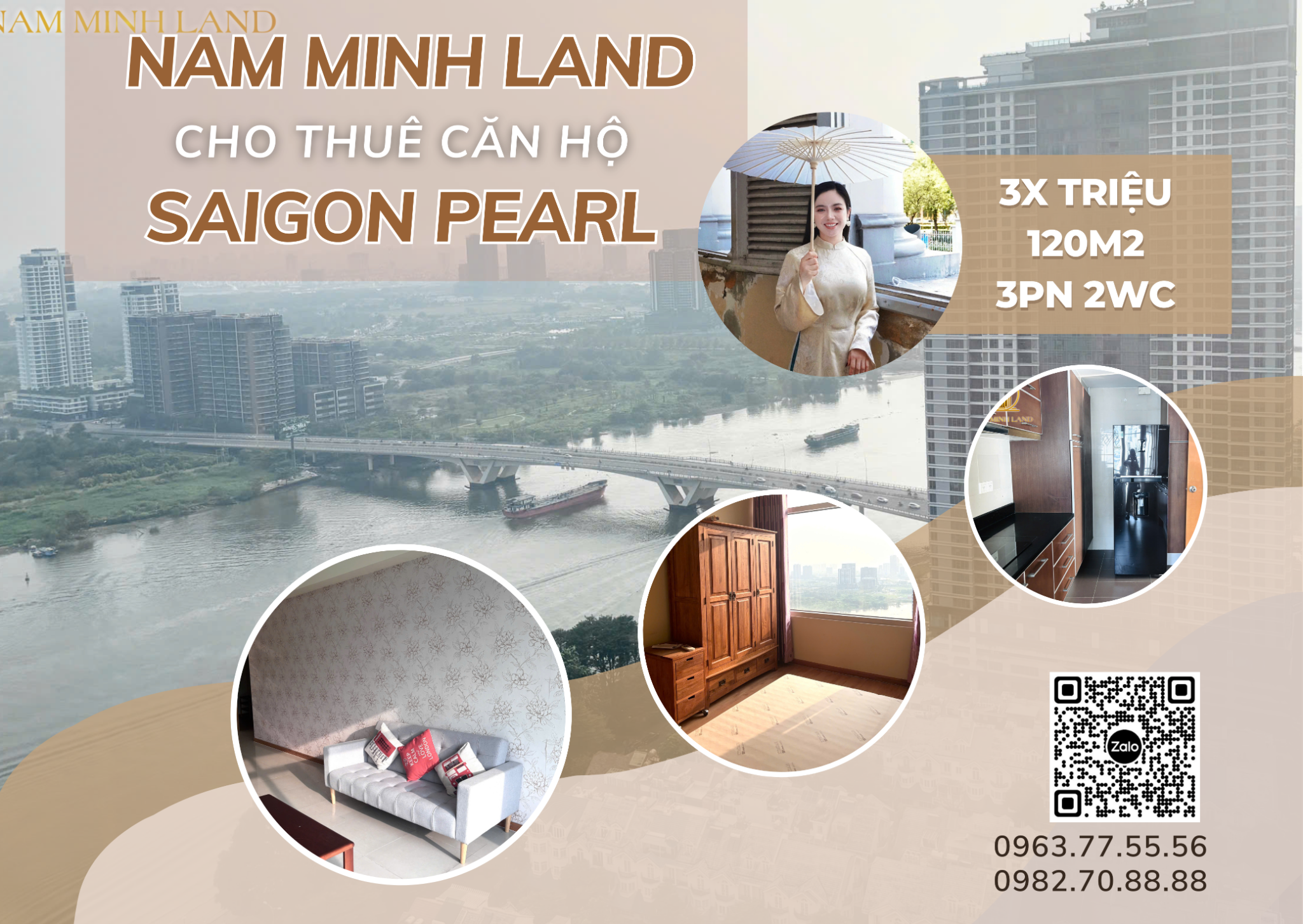 Cho thuê căn hộ Saigon Pearl 3 phòng ngủ 120m2- View sông ngắm trọn pháo hoa trong tầm mắt