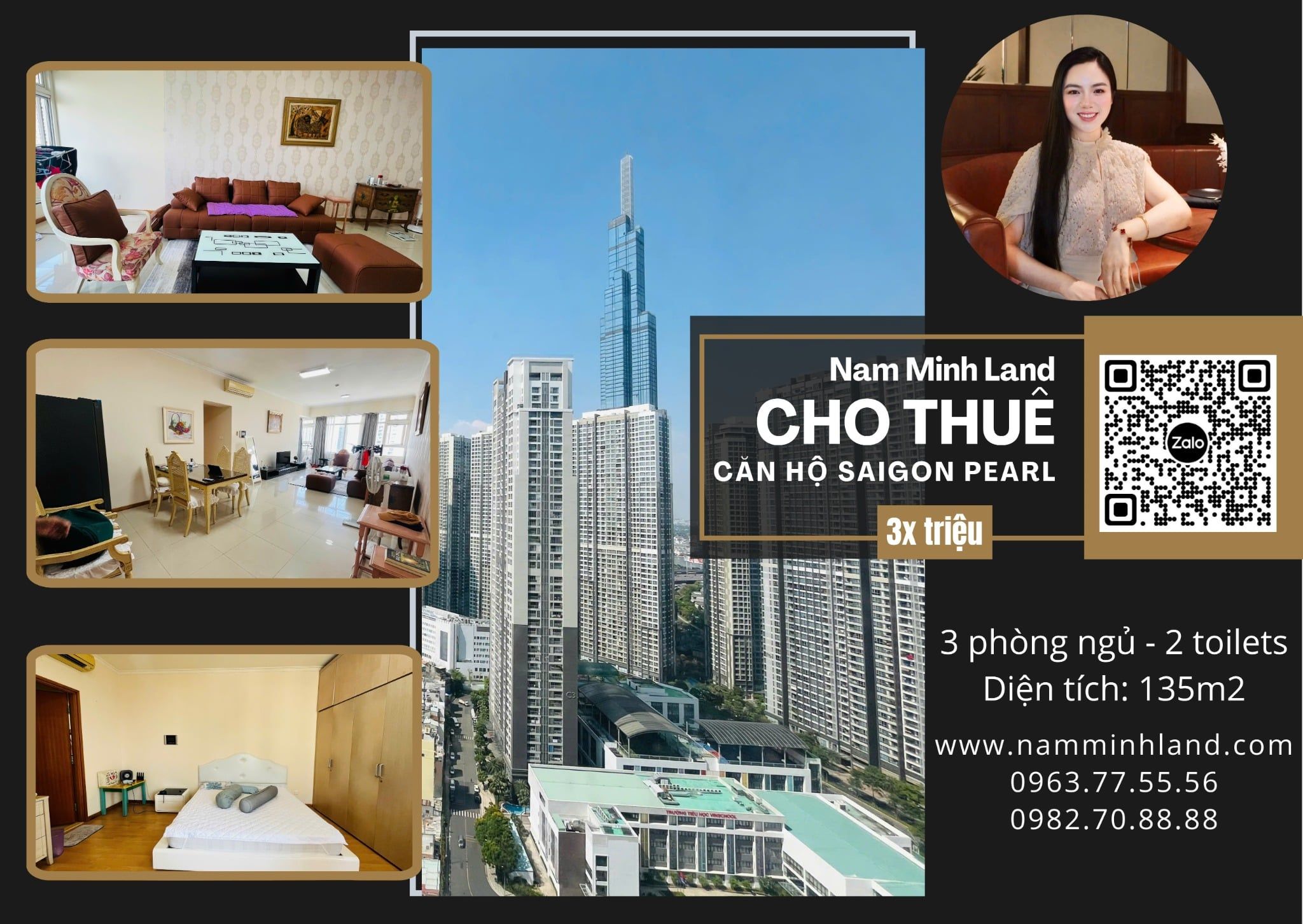 Cho thuê căn hộ Saigon Pearl 3 phòng ngủ 135m2 - Landmark 81 ngay trong tầm mắt