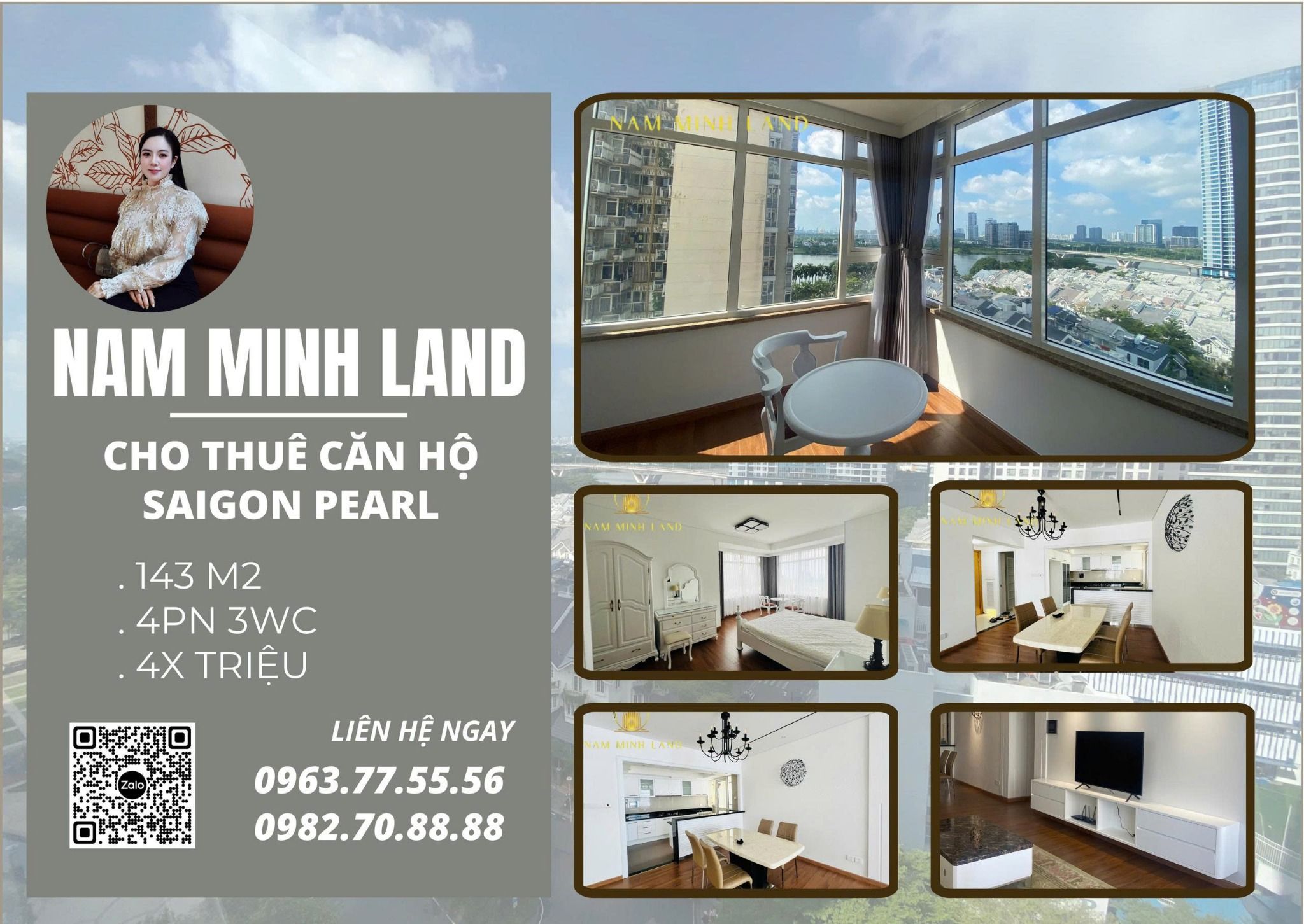 Cho thuê căn hộ Saigon Pearl 4 phòng ngủ 143m2- Trục view sông Sài gòn cực hiếm, nhanh tay chốt ngay